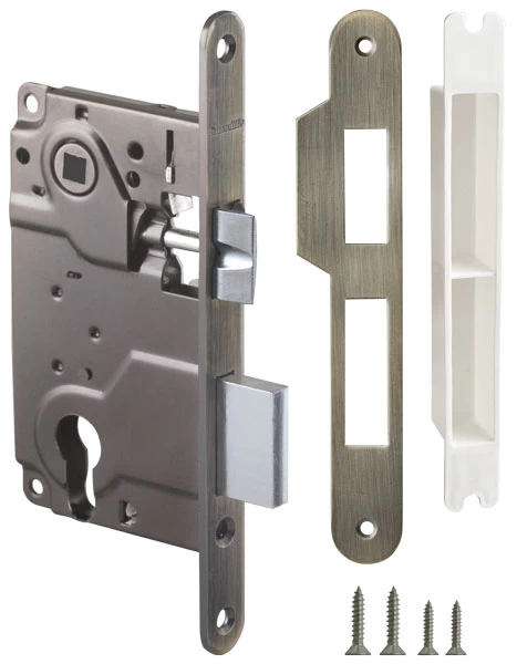 В комплект входит: замок, ответная планка, декоративная заглушка, комплект крепежа. Материал корпуса: сталь, материал планки и язычка: ZAMAK. Гарантия 5 лет.