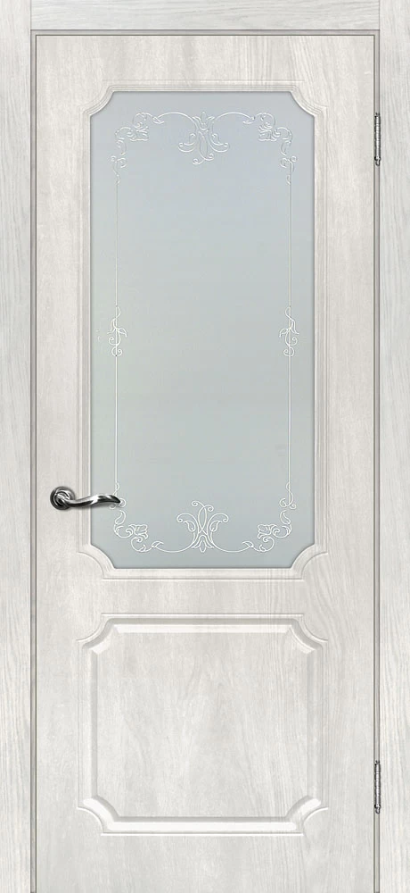 Качественная Межкомнатная дверь Сиена-4 Дуб жемчужный продается по цене 11 363 руб. за полотно. Доступные размеры 550x1900, 600x1900, 600x2000, 700x2000, 800x2000, 900x2000. Так же в наличии большой выбор комплектующих к данной модели, подходящих по цвету и фактуре.