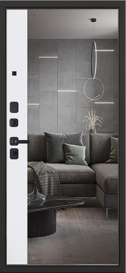 Надежная входная Дверь Scandi с зеркалом премиум класса по цене 44 531 руб. Большая толщина стали защитит от проникновения в ваш дом, квартиру или коттедж. Используется очень качественная фурнитура: замки, цилиндры, ручки, защелки. Покрытие и отделка двери изготовлено под внимательным контролем производителя. Дверь имеет долгий срок службы и гарантию.
