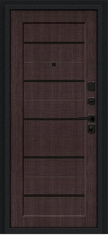 Надежная входная Дверь Браво Борн/SBlack Букле черное/Wenge Melinga премиум класса по цене 30 731 руб. Большая толщина стали защитит от проникновения в ваш дом, квартиру или коттедж. Используется очень качественная фурнитура: замки, цилиндры, ручки, защелки. Покрытие и отделка двери изготовлено под внимательным контролем производителя. Дверь имеет долгий срок службы и гарантию.