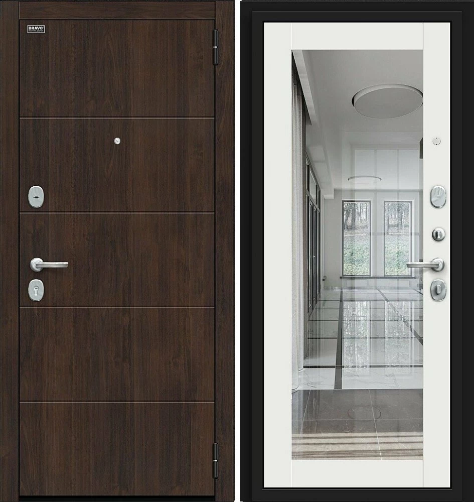Надежная входная Дверь Браво Флэт Kale Almon/Off-white премиум класса по цене 41 031 руб. Большая толщина стали защитит от проникновения в ваш дом, квартиру или коттедж. Используется очень качественная фурнитура: замки, цилиндры, ручки, защелки. Покрытие и отделка двери изготовлено под внимательным контролем производителя. Дверь имеет долгий срок службы и гарантию.