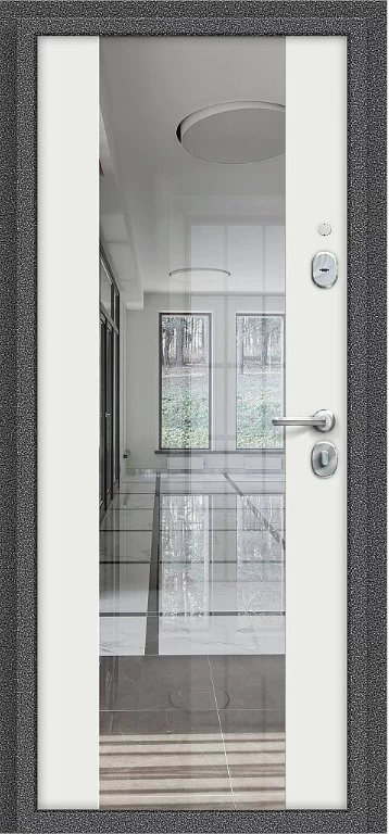 Надежная входная Дверь Браво Север-7 Антик Серебряный/Белый Зеркало премиум класса по цене 30 731 руб. Большая толщина стали защитит от проникновения в ваш дом, квартиру или коттедж. Используется очень качественная фурнитура: замки, цилиндры, ручки, защелки. Покрытие и отделка двери изготовлено под внимательным контролем производителя. Дверь имеет долгий срок службы и гарантию.