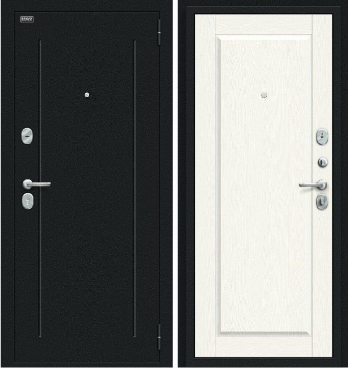 Надежная входная Дверь Браво Сьют Kale Букле черное White Wood премиум класса по цене 35 701 руб. Большая толщина стали защитит от проникновения в ваш дом, квартиру или коттедж. Используется очень качественная фурнитура: замки, цилиндры, ручки, защелки. Покрытие и отделка двери изготовлено под внимательным контролем производителя. Дверь имеет долгий срок службы и гарантию.