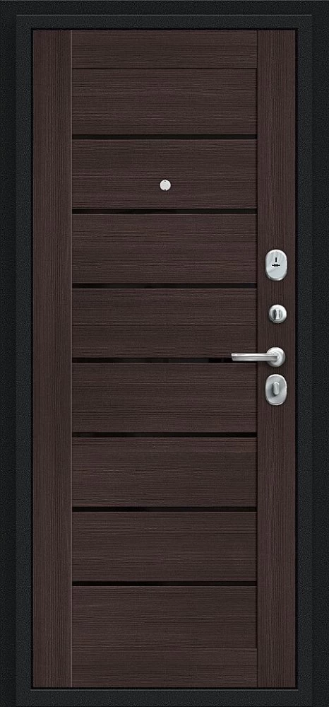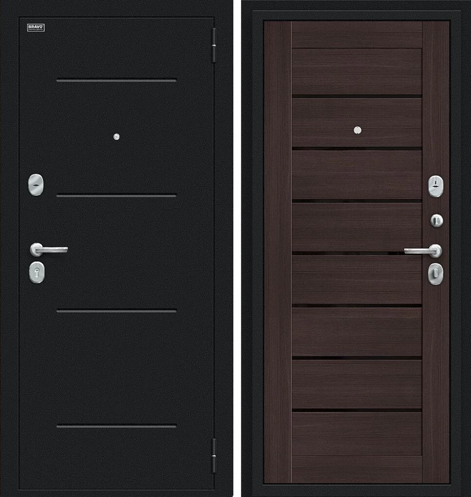 Надежная входная Дверь Браво Техно Букле черное/Wenge Veralinga премиум класса по цене 30 581 руб. Большая толщина стали защитит от проникновения в ваш дом, квартиру или коттедж. Используется очень качественная фурнитура: замки, цилиндры, ручки, защелки. Покрытие и отделка двери изготовлено под внимательным контролем производителя. Дверь имеет долгий срок службы и гарантию.