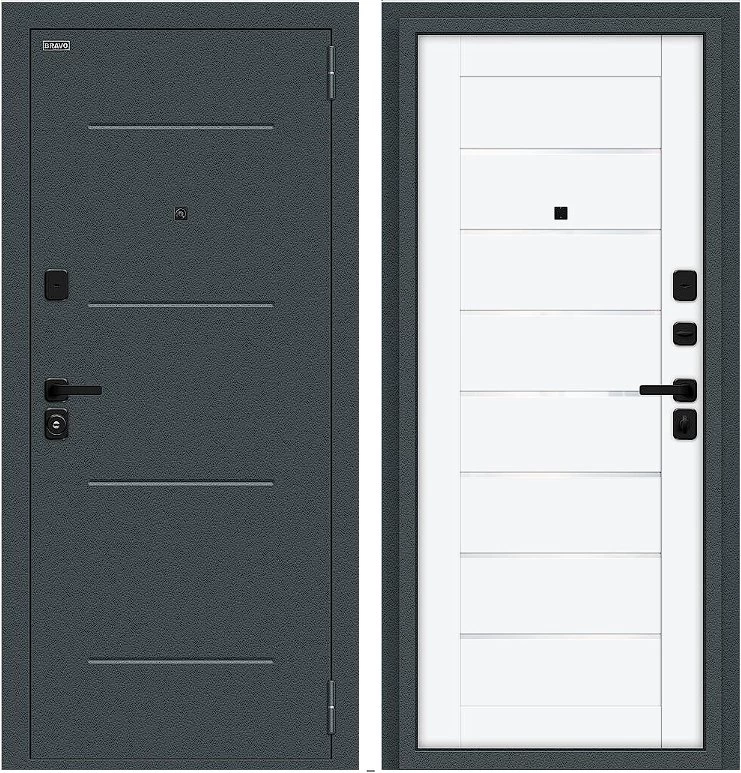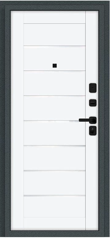 Надежная входная Дверь Браво Техно/SBlack Старк антрацит/White Silk премиум класса по цене 33 481 руб. Большая толщина стали защитит от проникновения в ваш дом, квартиру или коттедж. Используется очень качественная фурнитура: замки, цилиндры, ручки, защелки. Покрытие и отделка двери изготовлено под внимательным контролем производителя. Дверь имеет долгий срок службы и гарантию.