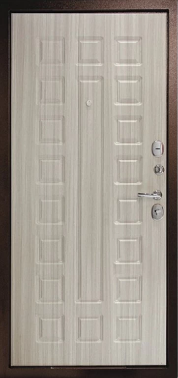 Надежная входная Дверь Рубикон 1 Медь Сандал белый премиум класса по цене 32 051 руб. Большая толщина стали защитит от проникновения в ваш дом, квартиру или коттедж. Используется очень качественная фурнитура: замки, цилиндры, ручки, защелки. Покрытие и отделка двери изготовлено под внимательным контролем производителя. Дверь имеет долгий срок службы и гарантию.