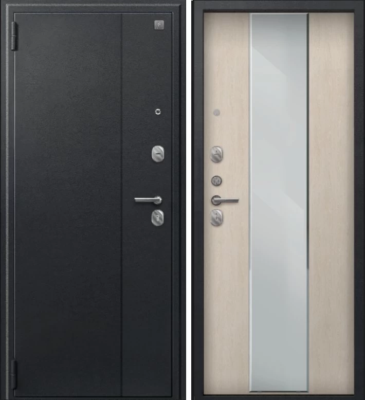 Надежная входная Дверь A-04 черный сатин - седой дуб зеркало премиум класса по цене 33 331 руб. Большая толщина стали защитит от проникновения в ваш дом, квартиру или коттедж. Используется очень качественная фурнитура: замки, цилиндры, ручки, защелки. Покрытие и отделка двери изготовлено под внимательным контролем производителя. Дверь имеет долгий срок службы и гарантию.