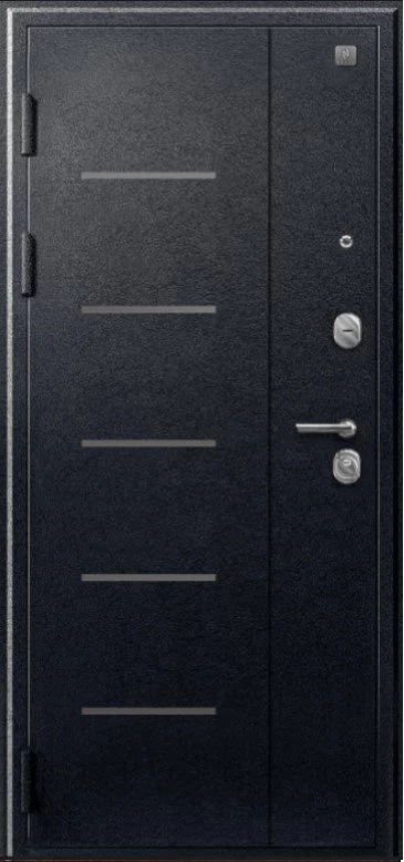 Надежная входная Дверь V-05 Черный муар - Темная лиственница премиум класса по цене 41 081 руб. Большая толщина стали защитит от проникновения в ваш дом, квартиру или коттедж. Используется очень качественная фурнитура: замки, цилиндры, ручки, защелки. Покрытие и отделка двери изготовлено под внимательным контролем производителя. Дверь имеет долгий срок службы и гарантию.