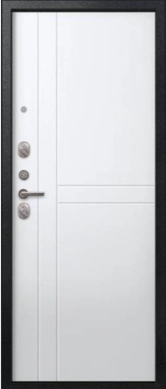 Надежная входная Дверь V-06 Черный муар - Белый премиум класса по цене 38 081 руб. Большая толщина стали защитит от проникновения в ваш дом, квартиру или коттедж. Используется очень качественная фурнитура: замки, цилиндры, ручки, защелки. Покрытие и отделка двери изготовлено под внимательным контролем производителя. Дверь имеет долгий срок службы и гарантию.